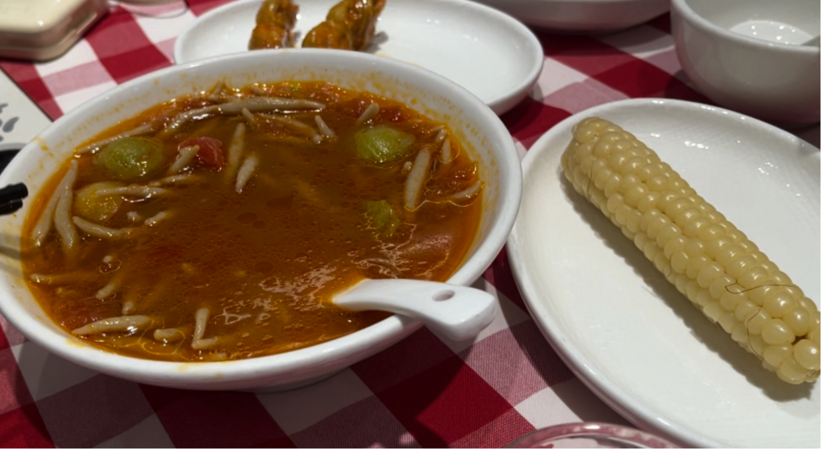 另一旁是两位约十四五岁的初中女生,正共享一碗莜面,挎包上挂着一个《盗墓笔记》角色的棉花娃娃。她们说是第一次来,只点了一碗面、两根烤串、一份小玉米,消费56元。问及味道,戴眼镜的女孩直言:“不好吃,而且还贵。”